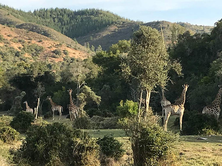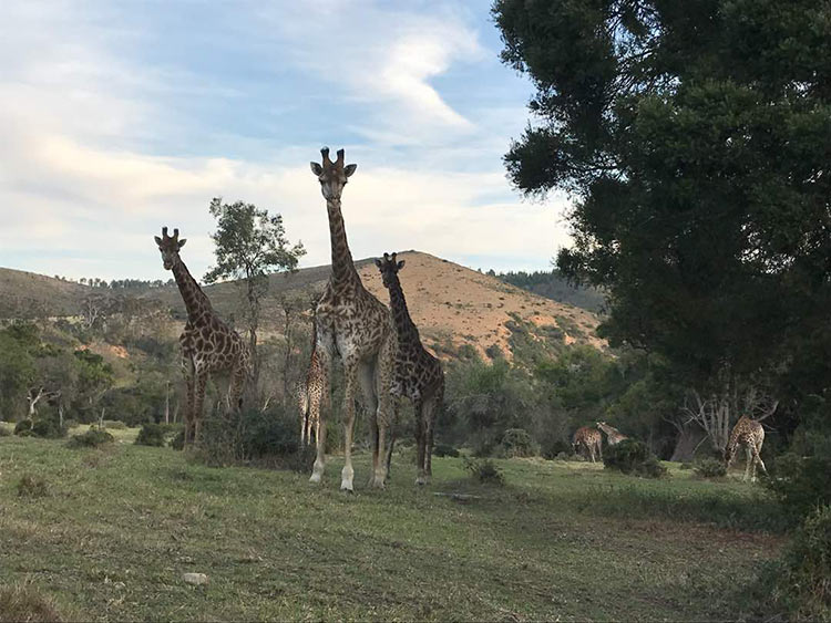 Needless to say, and largely due to Natascha’s efficiency, all of our hardy men turned up bang on time at the venue, Giraffe’s View, a stunning game park run by hosts Vicky and Neil Megersee (google them) in an area natural beauty populated with a wide range of wild animals including, you guessed it, giraffe… The reserve is big enough that survivors get a sense of isolation during the 30-minute hike from the reception area to our training area, nestled in a small valley of indigenous forest.